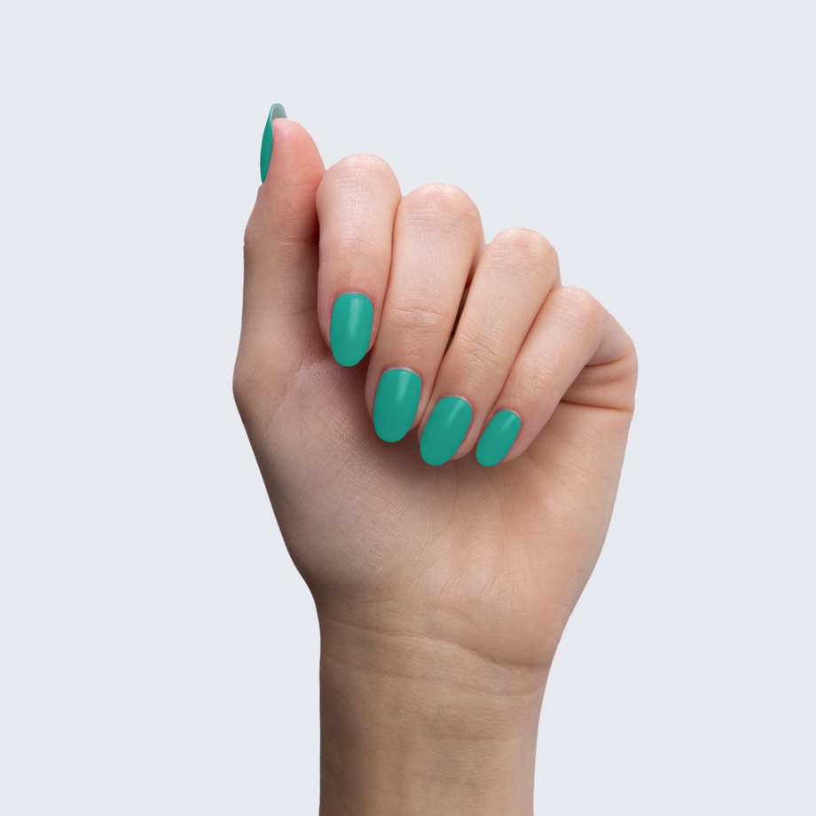 True teal green. Medium-dark. Opaque. Cool undertone.